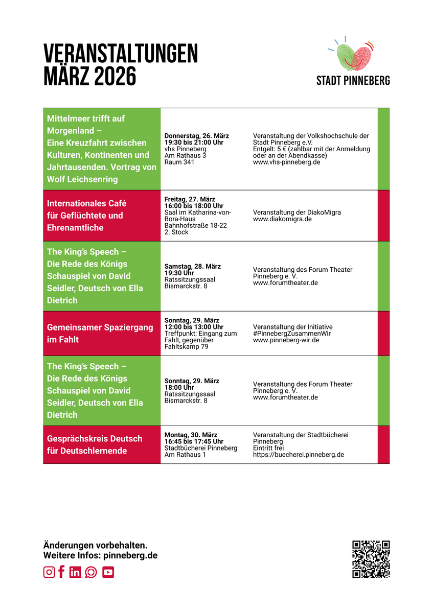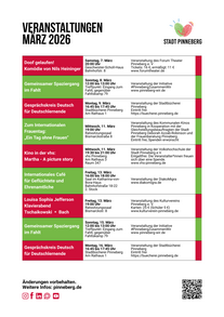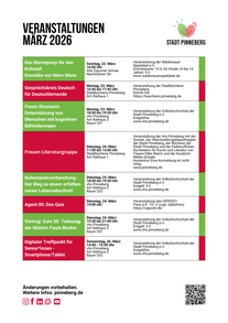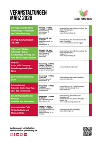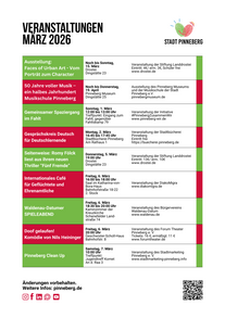 Hier finden Sie eine Veranstaltungsübersicht für den aktuellen Monat. Änderungen vorbehalten. Wollen Sie Ihre Veranstaltung hier mit aufführen lassen? Wenden Sie sich an unser Veranstaltungsteam!