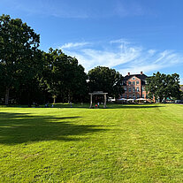 Direkt hinter der Pinneberger Innenstadt findet sich das barocke Drosteigebäude mit dem angrenzenden Park.