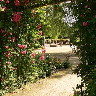 Eingebettet in dem Stadtwald „Fahlt“ trifft man auf eine rosenreiche Blütenfülle. An lauschigen Sitzplätzen, umspannt von Rankbögen, sorgen rund 8.000 Rosen in 80 verschiedenen Sorten mit interessanten Bäumen, mächtigen Rhododendren und Magnolien, Blumenzwiebel Verwilderung aus Krokussen und Tulpenarten sowie schöne Staudenpflanzungen für einen Farbreigen vom Frühjahr bis weit in den Herbst.