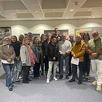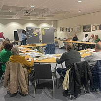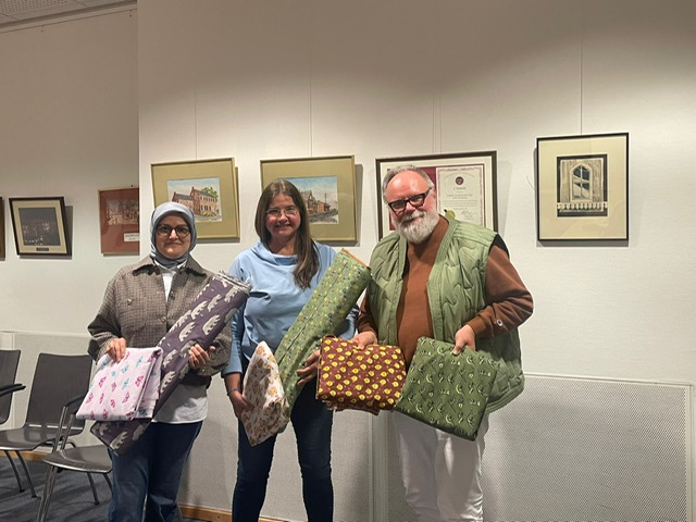 Der Einladung zum ersten Arbeitsgruppentreffen in das Rathaus der Stadt Pinneberg waren viele Unterstützerinnen, Unterstützer und der Kooperationspartner “Nähmaschine Neumünster” gefolgt. Gemeinsam wurden die Strukturen der Initiative weiter aufgebaut und Projekte geplant. Karl-Peter Weiland von “Nähmaschine Neumünster” stellte die Idee der “Lütje Verkleidung” vor und erläuterte das Regelwerk des “selbstwachsenden Möglichkeiten-Netzwerks”. Symbolisch übergab er Lucia Asmussen, Mitbegründerin von #Pinnebergzusammenwir, bunte Banner mit Kindervornamen.